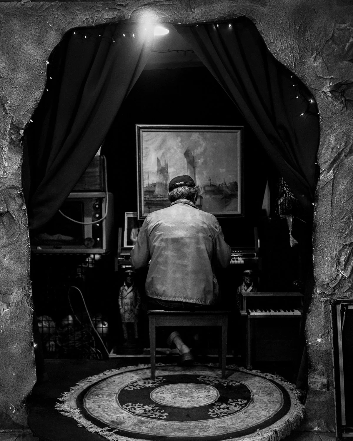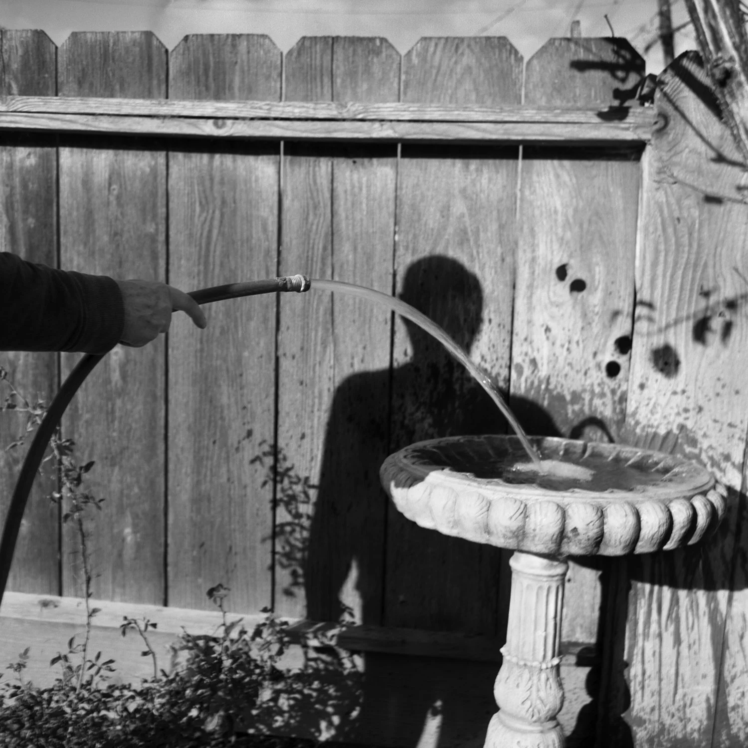 Many of these photographs were taken at my childhood home, documenting activities that have happened with regularity over the past decade: filling the bird bath (For the Birds), inspecting the peach tree (Watching the Curl (Hoping to be Fruitful)), gazing over the yard while soaking in the sun (Wishing You Would Turn). Others are extensions of the experience of home: frequent road trips, visits with friends, or keeping up family traditions from afar (Touch, Fall). The present assures the most clarity, of course, but the further I travel from the moment, the more eager my memories are to greet me with goodbye.