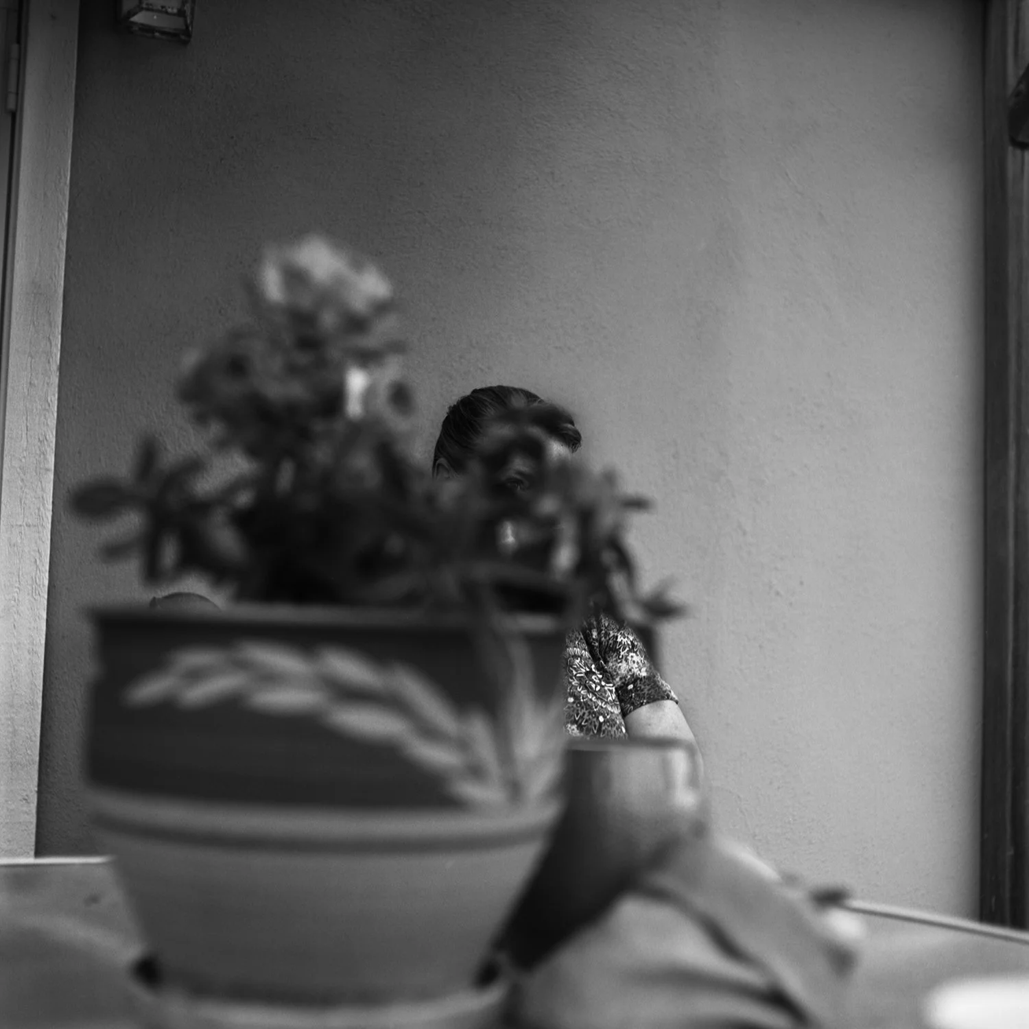 They Greet Me With Goodbye is based in the California landscape, a space where many of my memories have been feebly formed. Over a 10-year period, these images emerged in response to the fallibility of memory, when recognition and detail are mutually exclusive. The photographs in this project are memories of people and places that, to my traumatized brain, manifest with barriers. Objects and postures perform as partitions, demonstrating a memory that aches for certainty and falls short. These moments are simultaneously whole and fragmented, a representation of completeness that is flawed.
