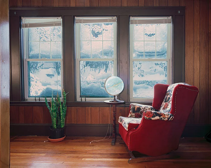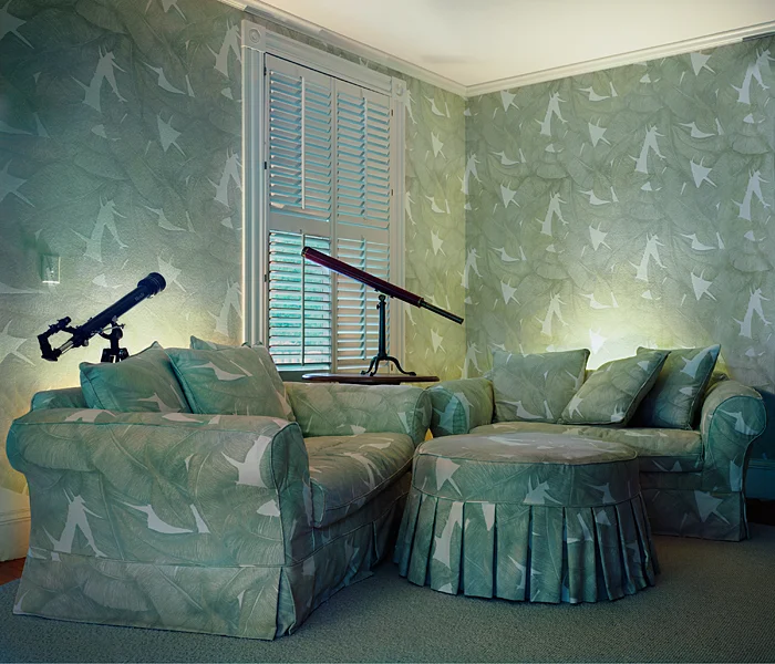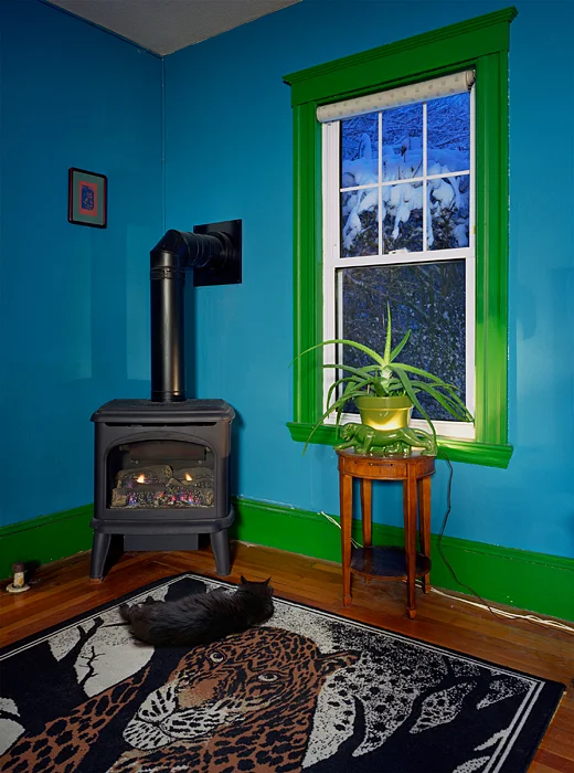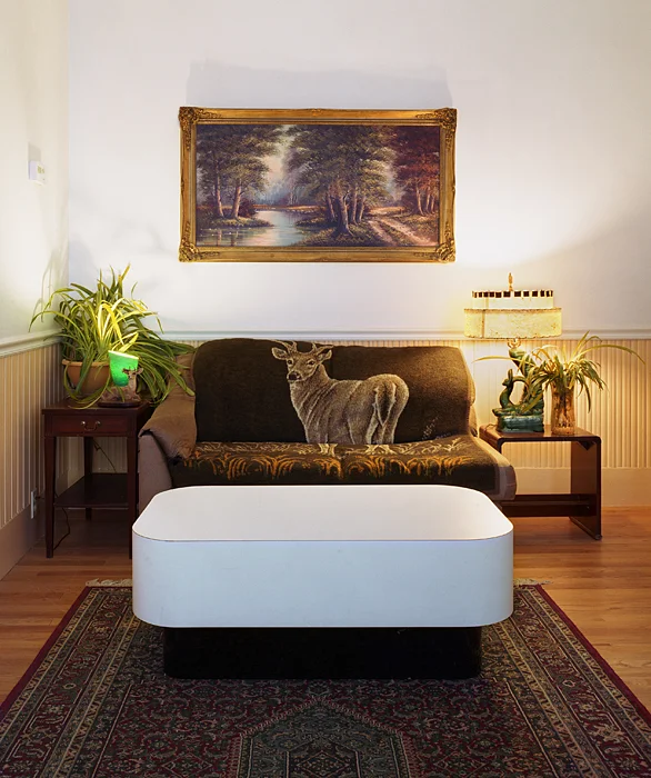 The photographs in Second Nature are a collection of private spaces that ask the viewer to imagine the people who inhabit them. We see both the unique ways we live behind closed doors, as well as the universal impulse to control our environment. In my images, the home is seen as both a refuge from and at times a re-creation of the outside world. For example, doors and windows can both frame exterior views and serve to keep the elements at bay. Landscape, weather, and wildlife lurk outside the walls even as they are brought safely inside in the form of pattern, simulation, and domesticated animals. Tensions and humor appear between absence and presence, genuine and artificial, the domestic and the natural worlds.